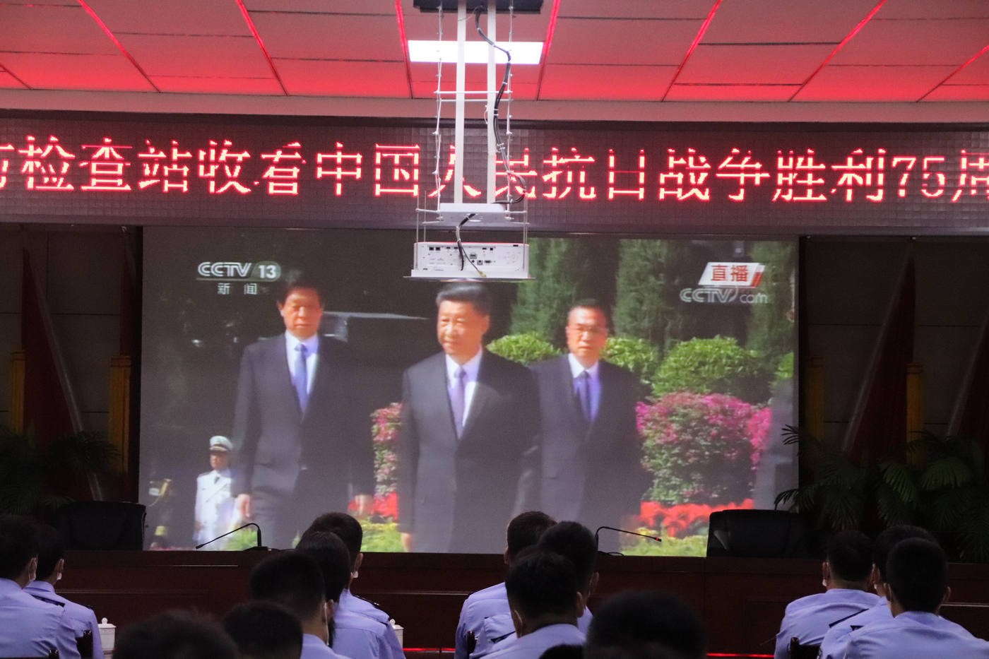 9月3日,策克出入境邊防檢查站組織全站民警收看中國(guó)人民抗日戰(zhàn)爭(zhēng)勝利75周年紀(jì)念日直播。