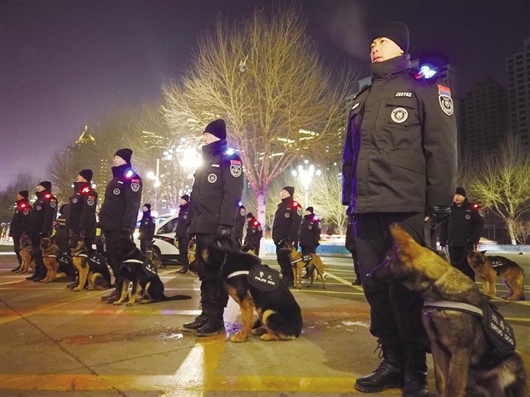 2020年12月31日19時許,首批警犬馴導(dǎo)員攜帶20條警犬亮相街頭,在轄區(qū)人流密集場所、購物商圈、公交站點及重點單位首次執(zhí)行巡邏任務(wù),開啟警犬巡邏管控警務(wù)新模式。