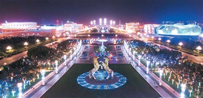 康巴什區(qū)城市中軸線夜景。
