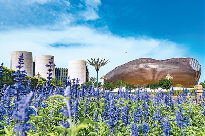 康巴什不大,建筑也不高,卻盡顯藝術(shù)、雅致與獨(dú)特。排列在其中軸線兩側(cè)的鄂爾多斯博物館、大劇院、圖書(shū)館等七大文化地標(biāo)氣勢(shì)非凡。這些建筑不是簡(jiǎn)單地模仿中國(guó)傳統(tǒng)建筑或歐洲建筑,而是創(chuàng)新運(yùn)用現(xiàn)代建筑藝術(shù)對(duì)蒙古包、蒙古族服飾、蒙古族三大典籍等傳統(tǒng)文化符號(hào)進(jìn)行闡釋解讀,充滿了鮮活的生命力和高超的藝術(shù)風(fēng)范。