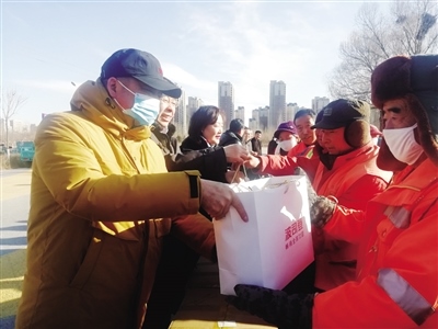裴永志告訴呼和浩特晚報(bào)記者:“我們夫妻經(jīng)營(yíng)著一家民營(yíng)企業(yè),2017年冬季的一天,我出差辦事,當(dāng)天早上7點(diǎn)多就趕到了機(jī)場(chǎng),天氣非常寒冷。到了機(jī)場(chǎng),看到有幾名環(huán)衛(wèi)工人正在打掃路邊的衛(wèi)生,其中一名年齡較大的環(huán)衛(wèi)工人摘下手套拾撿路邊的煙頭等垃圾。我當(dāng)時(shí)非常感動(dòng),覺(jué)得環(huán)衛(wèi)工人平凡而又偉大,于是,就想著為他們做點(diǎn)什么。出差回來(lái)后,我把想法告訴了妻子,沒(méi)想到妻子也非常支持,最終,我們決定為環(huán)衛(wèi)工人捐贈(zèng)棉衣。之后便與賽罕區(qū)環(huán)衛(wèi)局的工作人員進(jìn)行對(duì)接。當(dāng)年,我們自籌了15萬(wàn)元,購(gòu)買(mǎi)了206件棉衣,捐贈(zèng)給了環(huán)衛(wèi)工人?!?/p>