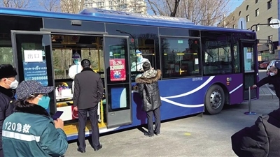2月28日上午,在呼和浩特市新華大街附近,一輛敞開了玻璃窗的公交車??吭诘缆放?,居民們按照規(guī)定間隔排隊,依次來到公交車前進行核酸采樣,醫(yī)務人員坐在車廂座椅有序地為市民進行核酸采樣,受檢人員不用上車,站在窗外,采完即走。