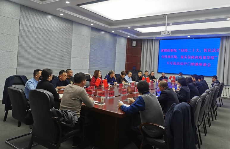 會上傳達了全區(qū)優(yōu)化營商環(huán)境的會議精神,通報了察右前旗人民檢察院“迎接二十大、優(yōu)化法治化營商環(huán)境、服務保障高質(zhì)量發(fā)展”大討論活動開展情況,介紹了院黨組下一步優(yōu)化法治化營商環(huán)境工作計劃,并希望與會代表暢所欲言,就企業(yè)發(fā)展中遇到的問題和困難以及察右前旗人民檢察院在優(yōu)化法治化營商環(huán)境方面存在的不足進行座談交流?!?/p>