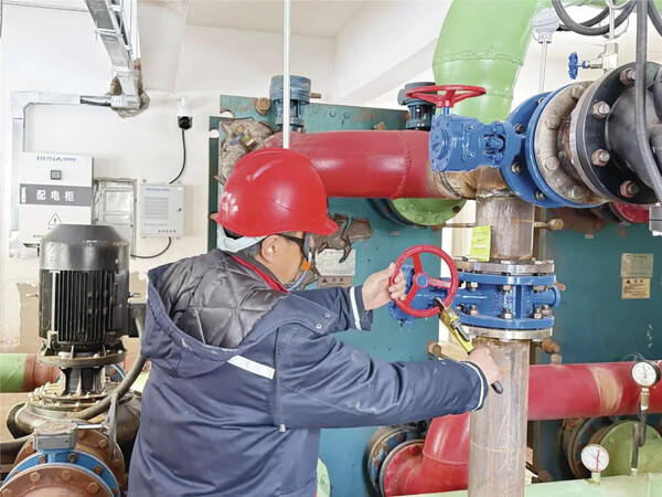工作人員在小區(qū)換熱站檢修