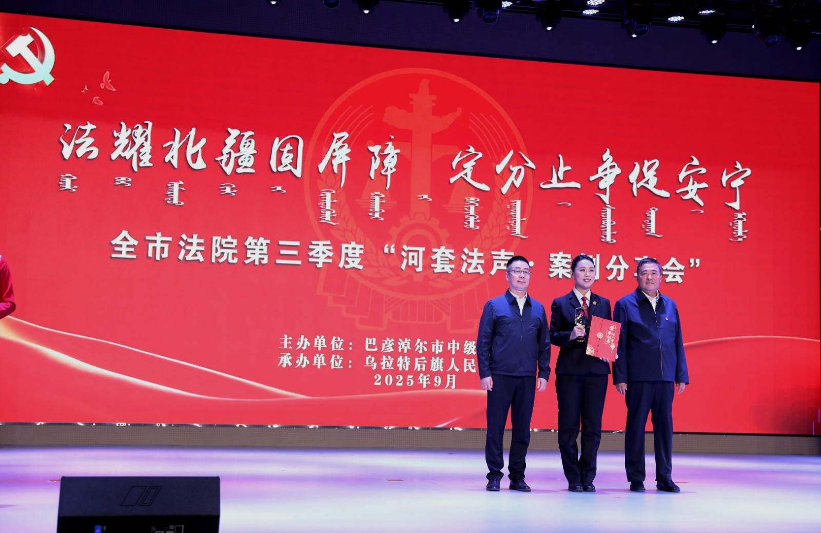 北疆新聞巴彥淖爾9月19日消息 9月19日,由巴彥淖爾市中級(jí)人民法院主辦、烏拉特后旗人民法院承辦的“法耀北疆固屏障,定分止?fàn)幋侔矊帯卑蛷┠谞柺蟹ㄔ旱谌径取昂犹追暋ぐ咐窒頃?huì)”成功舉辦。來(lái)自全市法院系統(tǒng)和部分巴彥淖爾市、烏拉特后旗兩級(jí)人大代表、政協(xié)委員及各界群眾等共計(jì)280余人參加了此次分享會(huì)。