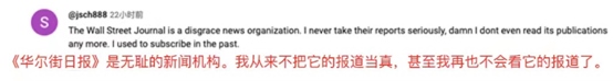 網(wǎng)友@jsch888說:“《華爾街日?qǐng)?bào)》是無恥的新聞機(jī)構(gòu)。我從來不把它的報(bào)道當(dāng)真,我甚至再也不會(huì)看它的報(bào)道了。”