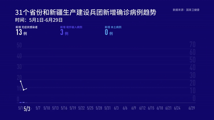 6月29日0—24時(shí),31個(gè)省(自治區(qū)、直轄市)和新疆生產(chǎn)建設(shè)兵團(tuán)報(bào)告新增確診病例19例,其中境外輸入病例11例(廣東4例,上海3例,四川3例,甘肅1例),本土病例8例(北京7例,上海1例);無新增死亡病例;新增疑似病例1例,為境外輸入病例(在上海)。