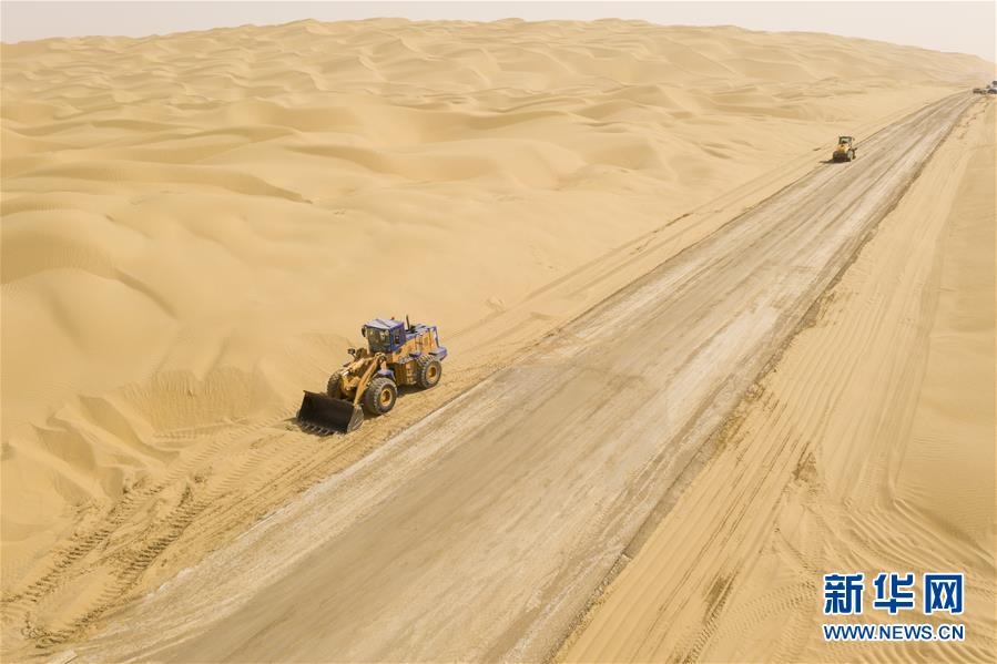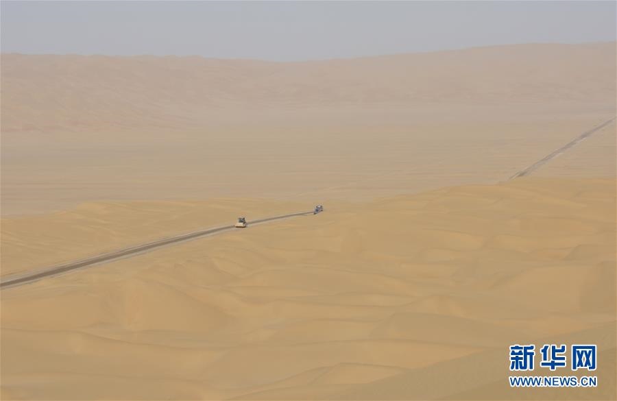 這是9月24日拍攝的新疆尉犁至且末公路(無(wú)人機(jī)照片)。新華社發(fā)(舒金培攝)