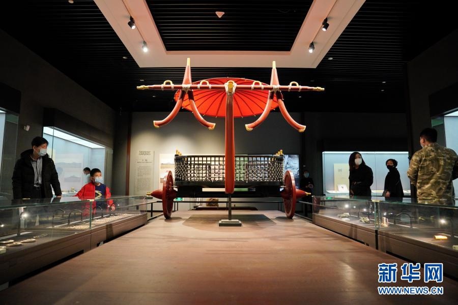 2月22日,參觀者在河北博物院《戰(zhàn)國雄風(fēng)——古中山國》展廳內(nèi)參觀 新華社記者牟宇攝