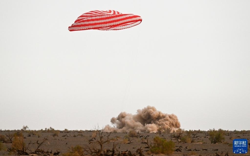 6月4日,神舟十五號(hào)載人飛船返回艙在東風(fēng)著陸場(chǎng)成功著陸。新華社記者 任軍川 攝