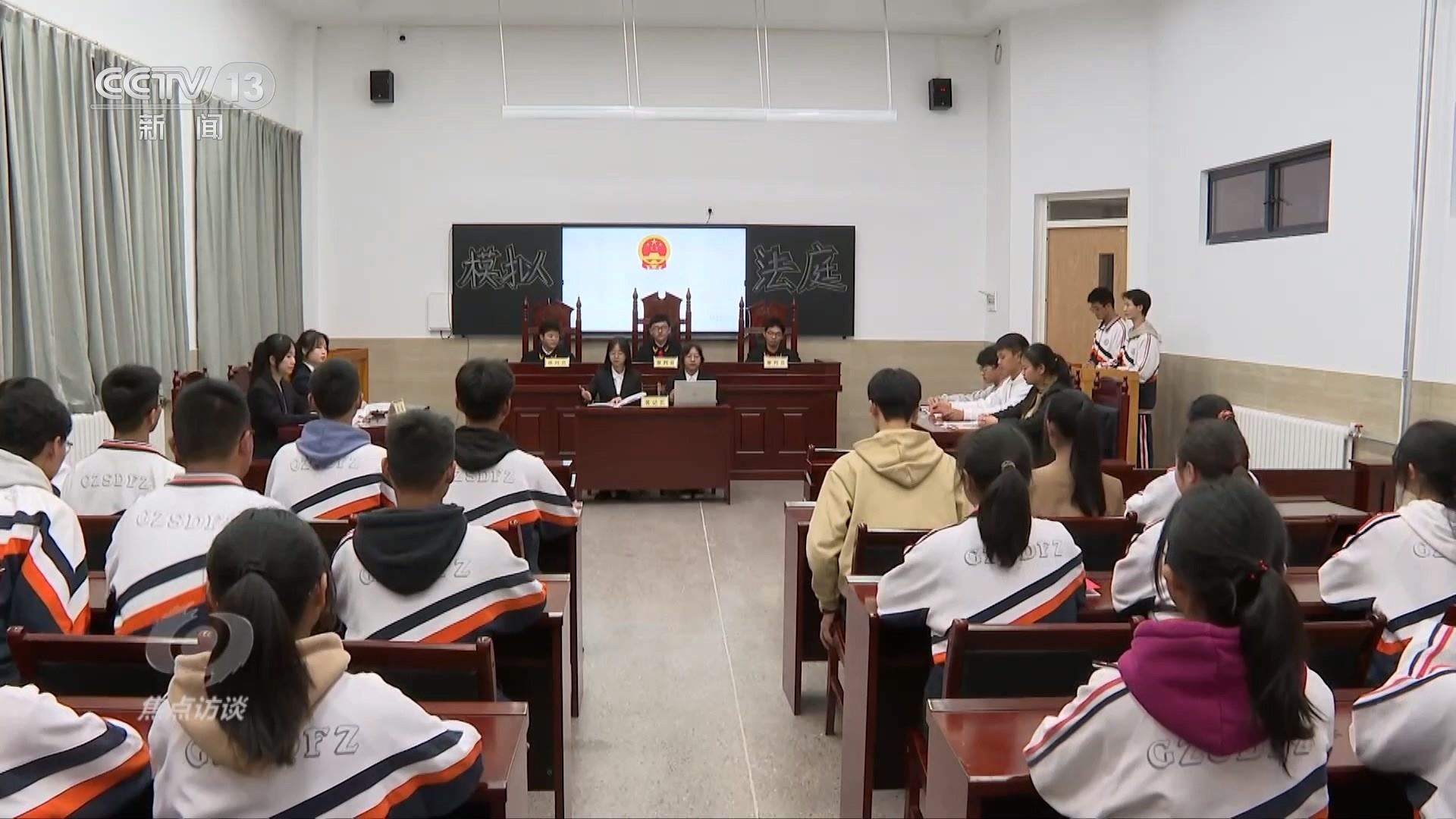 貴州師大附中高二學(xué)生朱培源正在參加學(xué)校組織的“模擬法庭”,他模擬的角色是審判長(zhǎng)。這次“庭審”模擬的是前幾年一起關(guān)于公民受教育權(quán)受到侵害的案件:某鄉(xiāng)鎮(zhèn)的一個(gè)家庭放任正在讀初中的孩子輟學(xué),經(jīng)多次走訪溝通無(wú)效后,鎮(zhèn)人民政府一紙?jiān)V狀把家長(zhǎng)告上法庭。在“模擬法庭”上,朱培源宣讀了憲法中的相關(guān)條文,并模擬宣判。