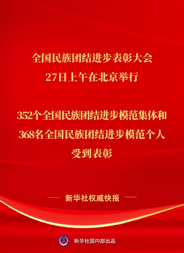 全國民族團(tuán)結(jié)進(jìn)步表彰大會27日上午在北京舉行。352個全國民族團(tuán)結(jié)進(jìn)步模范集體和368名全國民族團(tuán)結(jié)進(jìn)步模范個人受到表彰。各族兒女像石榴籽一樣緊緊抱在一起,推動中華民族成為認(rèn)同度更高、凝聚力更強(qiáng)的命運(yùn)共同體。