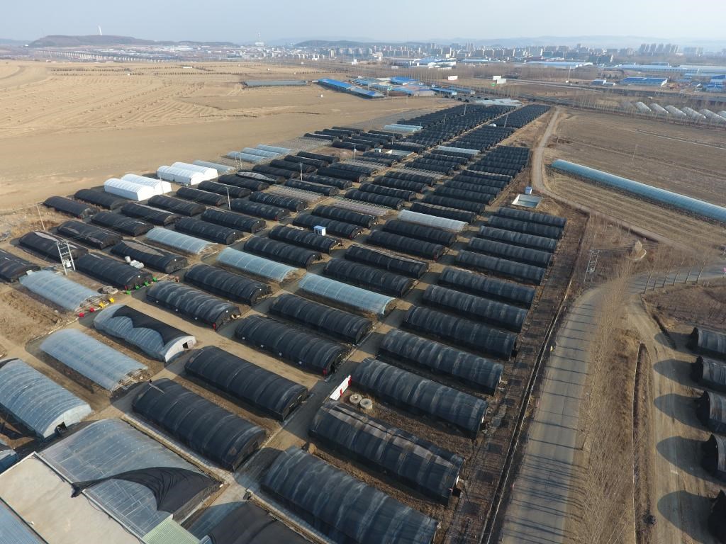悅來頤和食用菌種植專業(yè)合作社的部分大棚(無人機(jī)照片)。新華社記者 王松 攝