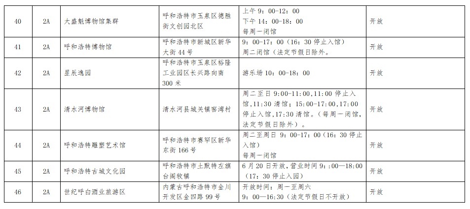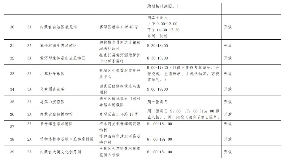 呼和浩特市(演唱會(huì)期間)A級(jí)旅游景區(qū)開放情況早知道