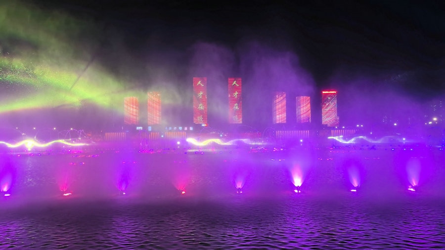 夏夜的烏蘭木倫湖音樂(lè)噴泉