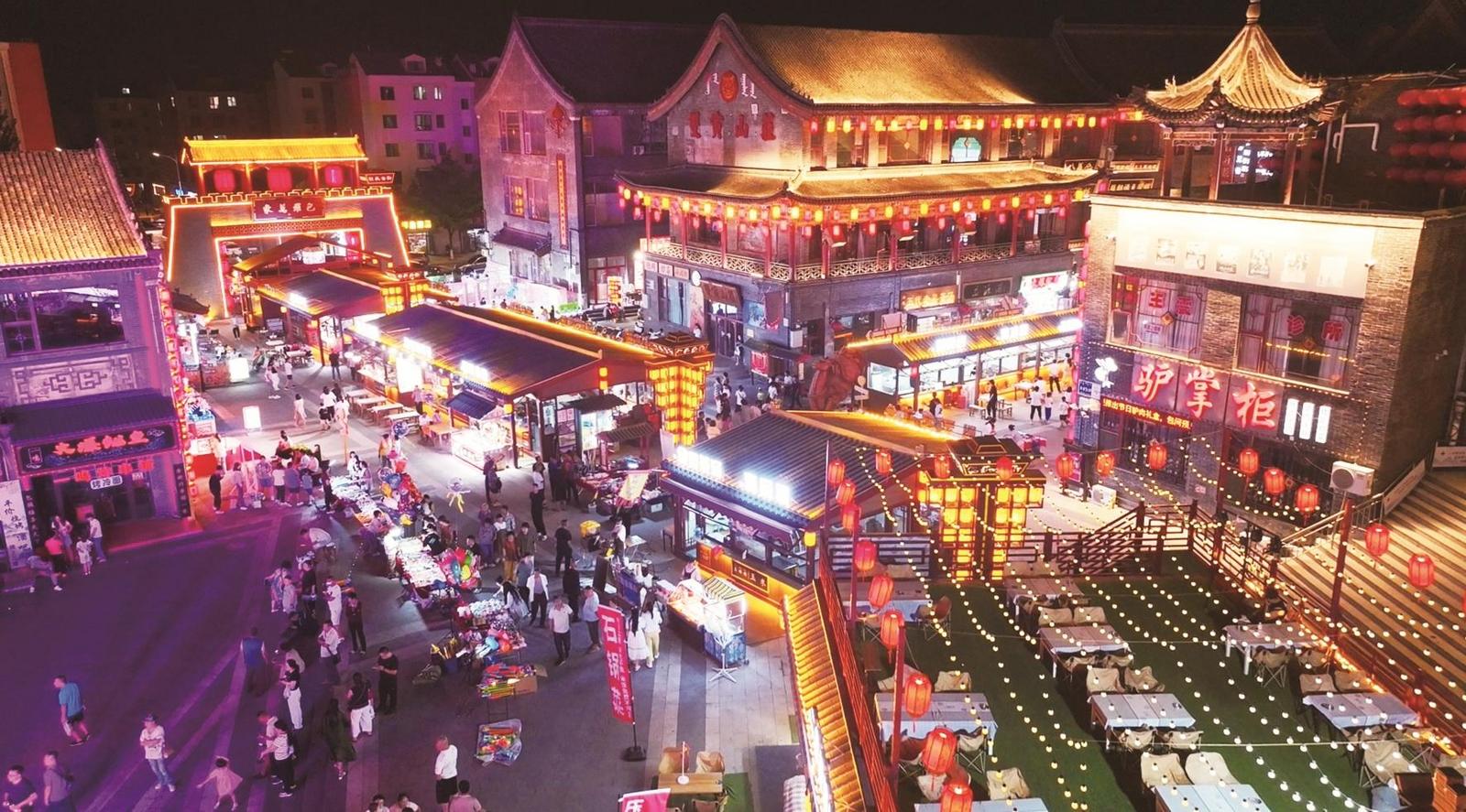 初秋的包頭金街,暮色剛合,就被燈火點(diǎn)成不夜天。飛檐翹角的古建輪廓,讓紅燈籠串成的光瀑,沿著青磚黛瓦淌下來(lái),裹著孜然香、奶茶甜,往人衣襟里鉆。
