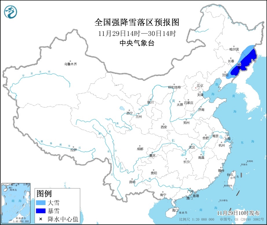 人民網(wǎng)北京11月29日電 (記者溫璐、郝孟佳)今天,中央氣象臺發(fā)布暴雪藍(lán)色預(yù)警。預(yù)計(jì)11月29日14時至30日14時,遼寧東北部、吉林東部、黑龍江東南部等地有大雪,部分地區(qū)有暴雪(10~16毫米)。上述部分地區(qū)新增積雪深度5~10厘米,局地可達(dá)15厘米以上。