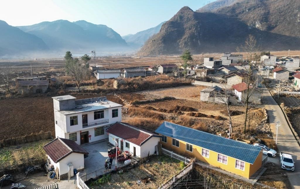 這是巴木玉布木位于越西縣板橋鎮(zhèn)桃園村的家(2月2日攝,無(wú)人機(jī)照片)。新華社記者 王曦 攝