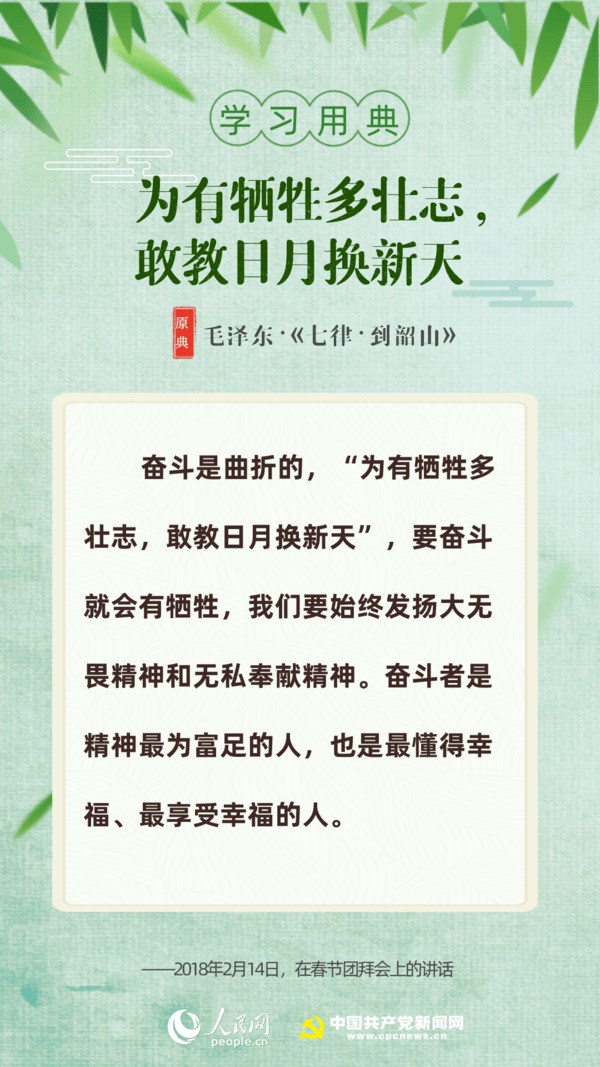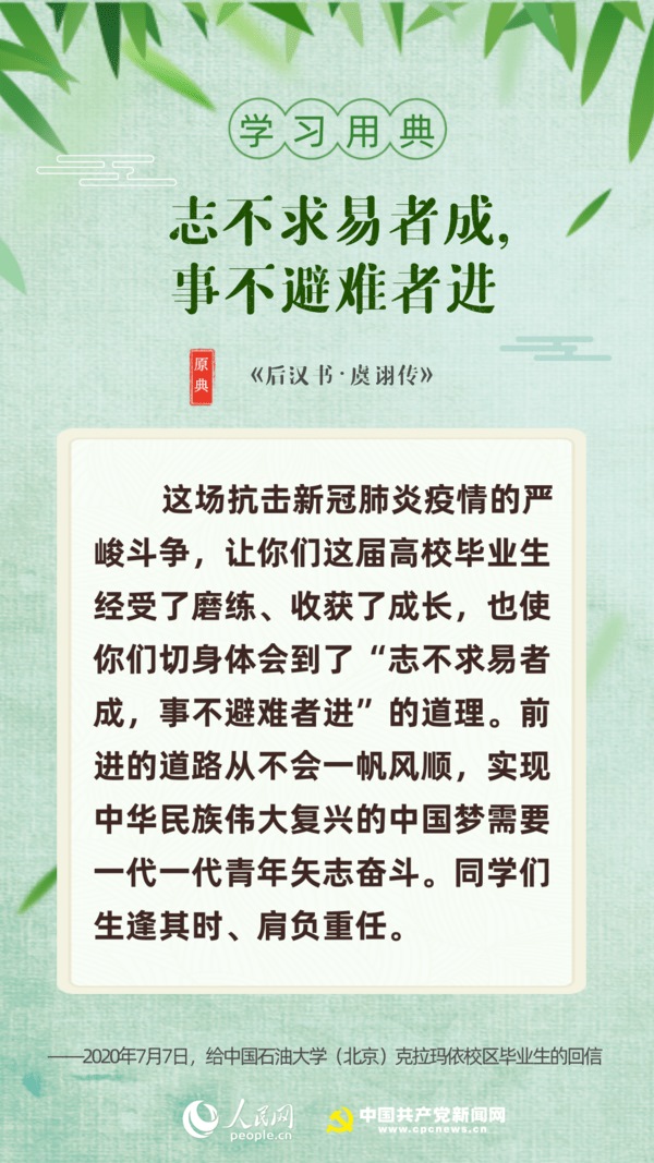 【編者按】“志不求易者成,事不避難者進(jìn)?!苯眨?xí)近平總書記給中國(guó)石油大學(xué)(北京)克拉瑪依校區(qū)畢業(yè)生回信,對(duì)廣大高校畢業(yè)生提出殷切期望?!叭松谇冢趧t不匱”“積土而為山,積水而為海”……近年來(lái),習(xí)近平多次引用詩(shī)句典故,激勵(lì)包含廣大青年在內(nèi)的全黨全國(guó)各族人民拼搏奮進(jìn)、埋頭苦干。正值“戰(zhàn)疫”“戰(zhàn)貧”關(guān)鍵時(shí)刻,人民網(wǎng)·中國(guó)共產(chǎn)黨新聞網(wǎng)與您一起回顧習(xí)近平講話中關(guān)于“奮斗”的10個(gè)名句。