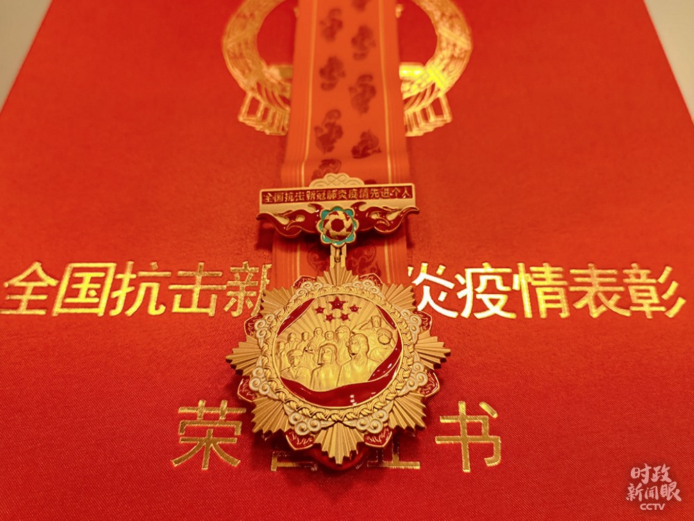 △全國抗擊新冠肺炎疫情先進(jìn)個人獎?wù)潞妥C書。(總臺央視記者張淳拍攝)