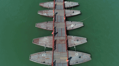 △廣濟(jì)橋中間有18艘木船。(總臺央視記者黃東旭、趙晨拍攝)