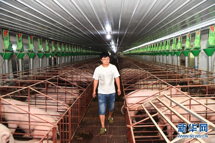 在重慶市萬(wàn)州區(qū)高梁鎮(zhèn)天鵝村生豬生態(tài)養(yǎng)殖基地,工作人員在查看生豬生長(zhǎng)情況(2020年6月5日攝)。新華社記者 王全超 攝