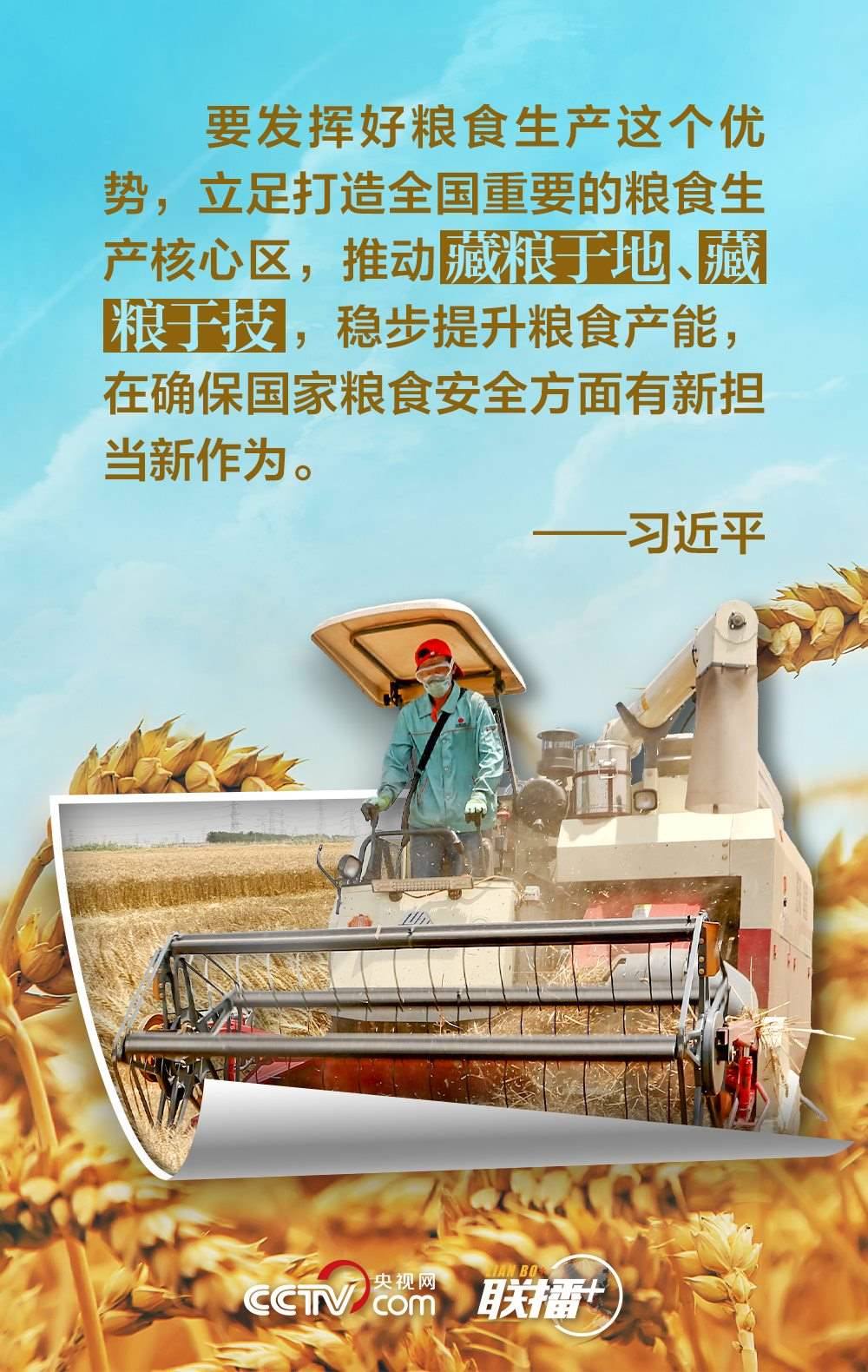 夏糧是全年糧食生產(chǎn)的第一季,約占我國(guó)全年糧食產(chǎn)量的五分之一,主要包括夏收的谷物、豆類和薯類等?!笆种杏屑Z,心中不慌?!绷?xí)近平總書記十分重視糧食安全,他強(qiáng)調(diào),中國(guó)人的飯碗任何時(shí)候都要牢牢端在自己手中,飯碗主要裝中國(guó)糧。值此夏收時(shí)節(jié),央視網(wǎng)《聯(lián)播+》與您一起學(xué)習(xí)領(lǐng)悟總書記的糧食觀。