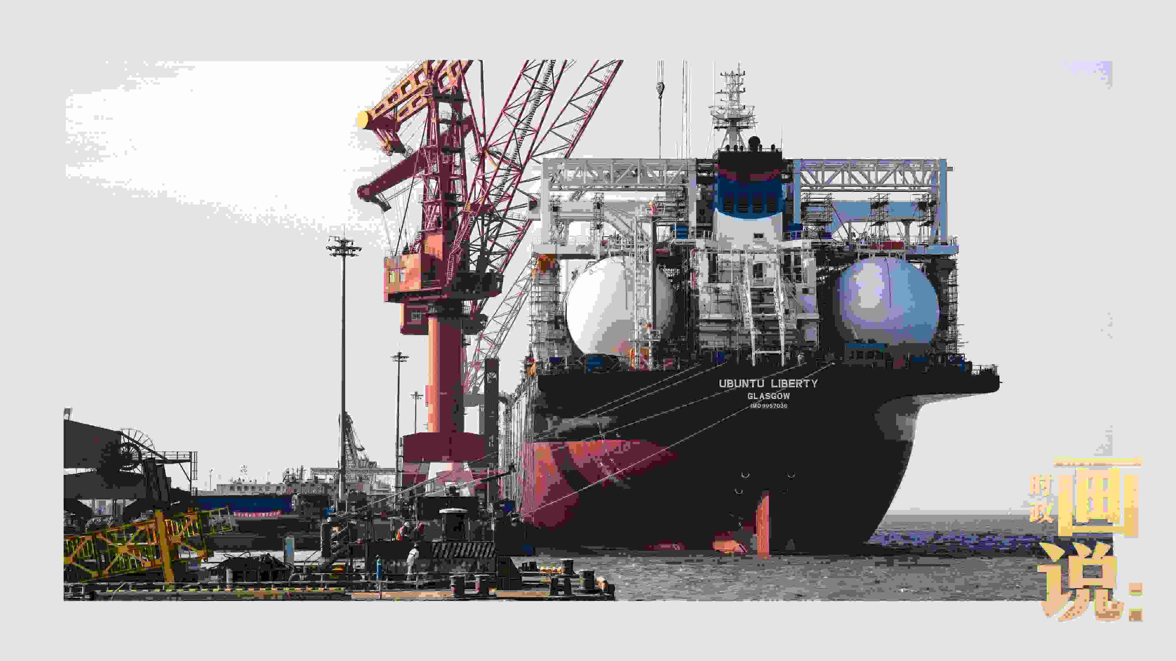 △外高橋船塢碼頭旁,一艘建造中的巨型雙燃料散貨船??吭诓次?。浦東新區(qū),上海