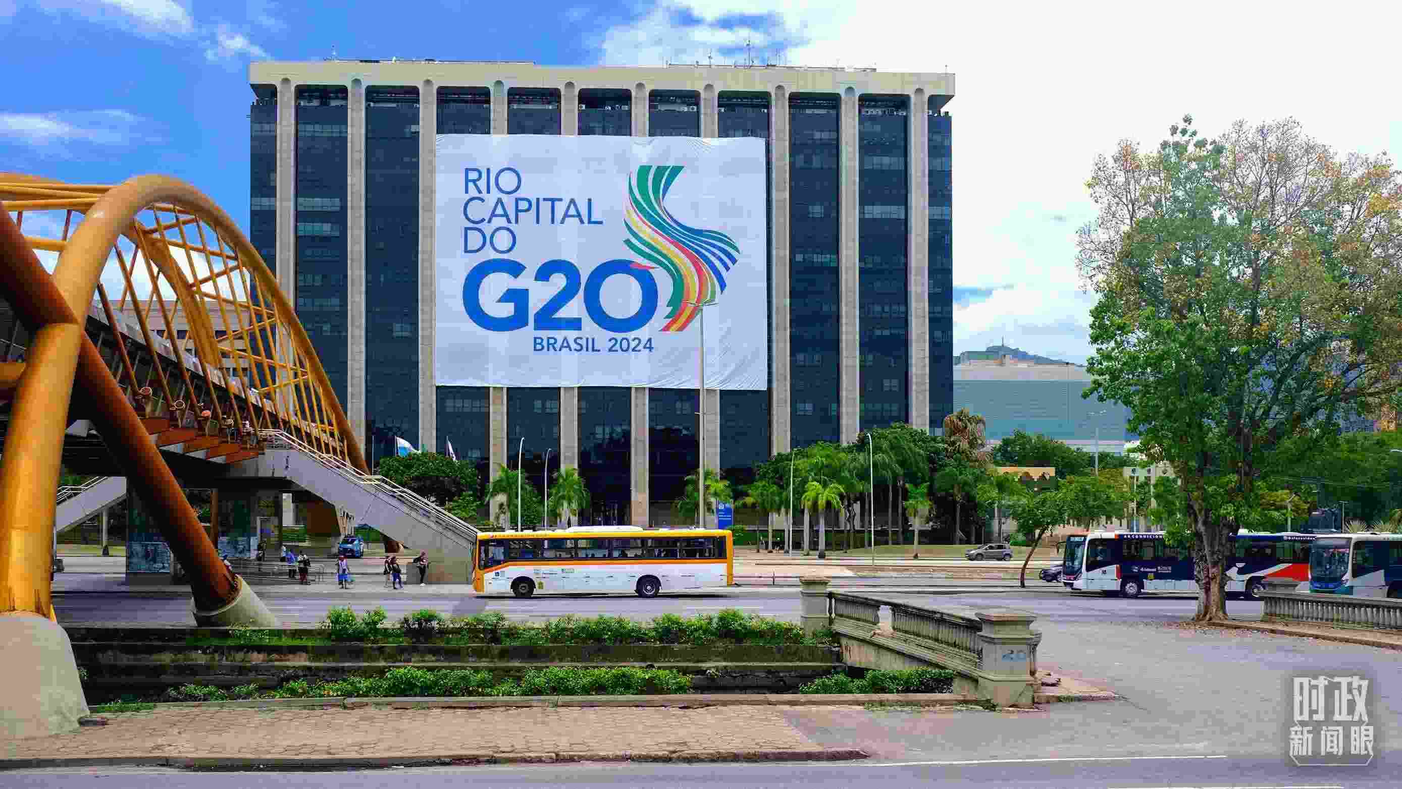 自1822年巴西獨(dú)立,到1960年巴西遷都至巴西利亞,里約熱內(nèi)盧一直是巴西的首都。老城區(qū)內(nèi)至今保存著舊首都的總統(tǒng)府、議會等建筑。今年G20峰會的會場,設(shè)在里約現(xiàn)代藝術(shù)博物館。在街頭,隨處可見“G20之都”標(biāo)識。
