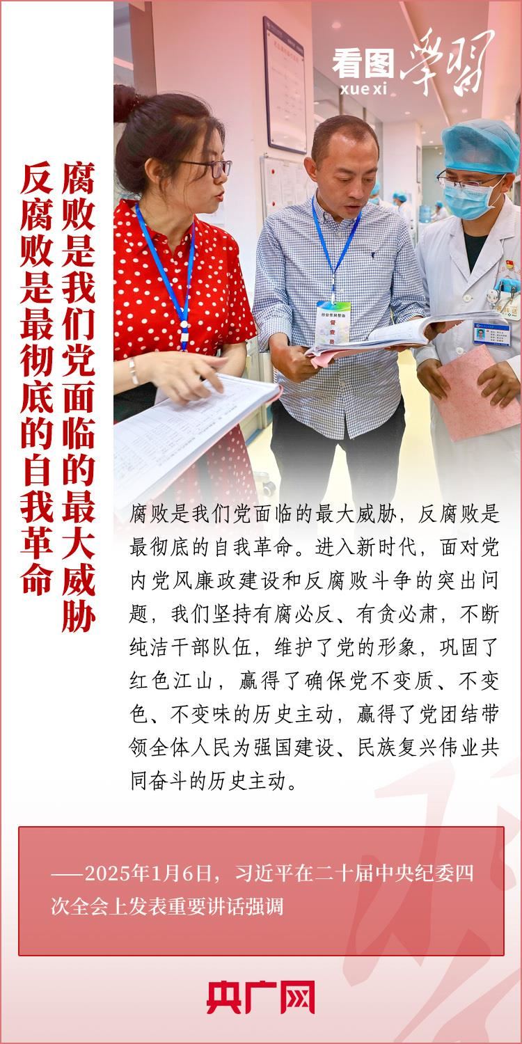 1月6日,習(xí)近平總書記在二十屆中央紀(jì)委四次全會(huì)上發(fā)表重要講話,充分肯定過去一年全面從嚴(yán)治黨取得的新進(jìn)展、新成效,深刻分析當(dāng)前反腐敗斗爭(zhēng)形勢(shì),對(duì)堅(jiān)決打好反腐敗斗爭(zhēng)攻堅(jiān)戰(zhàn)、持久戰(zhàn)、總體戰(zhàn)提出明確要求。總書記強(qiáng)調(diào),新時(shí)代新征程,必須堅(jiān)持用改革精神和嚴(yán)的標(biāo)準(zhǔn)管黨治黨,努力取得更大成效,確保黨的二十大和二十屆三中全會(huì)部署落地落實(shí),確保黨始終成為中國(guó)特色社會(huì)主義事業(yè)的堅(jiān)強(qiáng)領(lǐng)導(dǎo)核心,推動(dòng)中國(guó)式現(xiàn)代化行穩(wěn)致遠(yuǎn)。一起來學(xué)習(xí)!