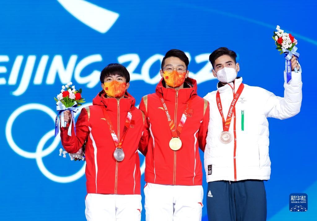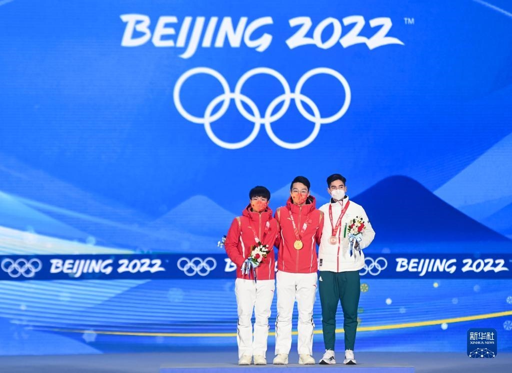 當日,北京2022年冬奧會短道速滑男子1000米獎牌頒發(fā)儀式在北京賽區(qū)頒獎廣場舉行。