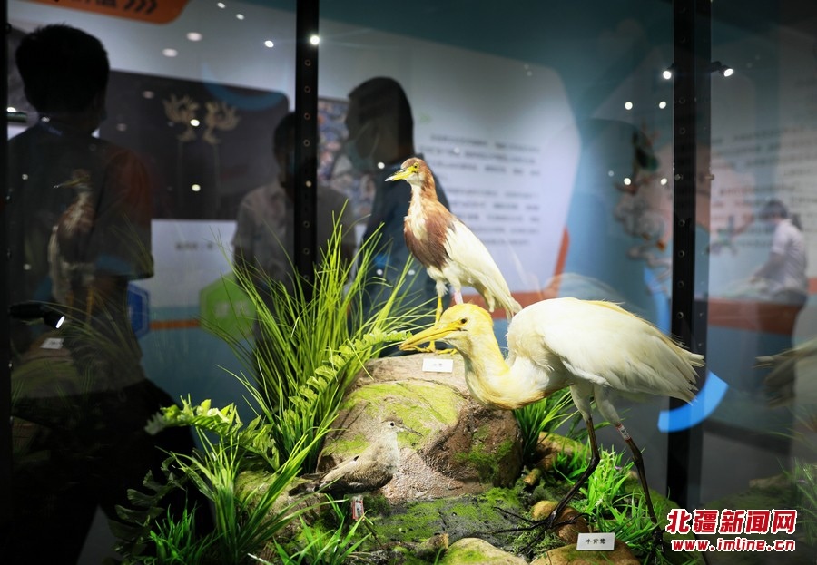 8月13日,參觀(guān)者在《振翅北疆》內(nèi)蒙古鳥(niǎo)類(lèi)特展觀(guān)展