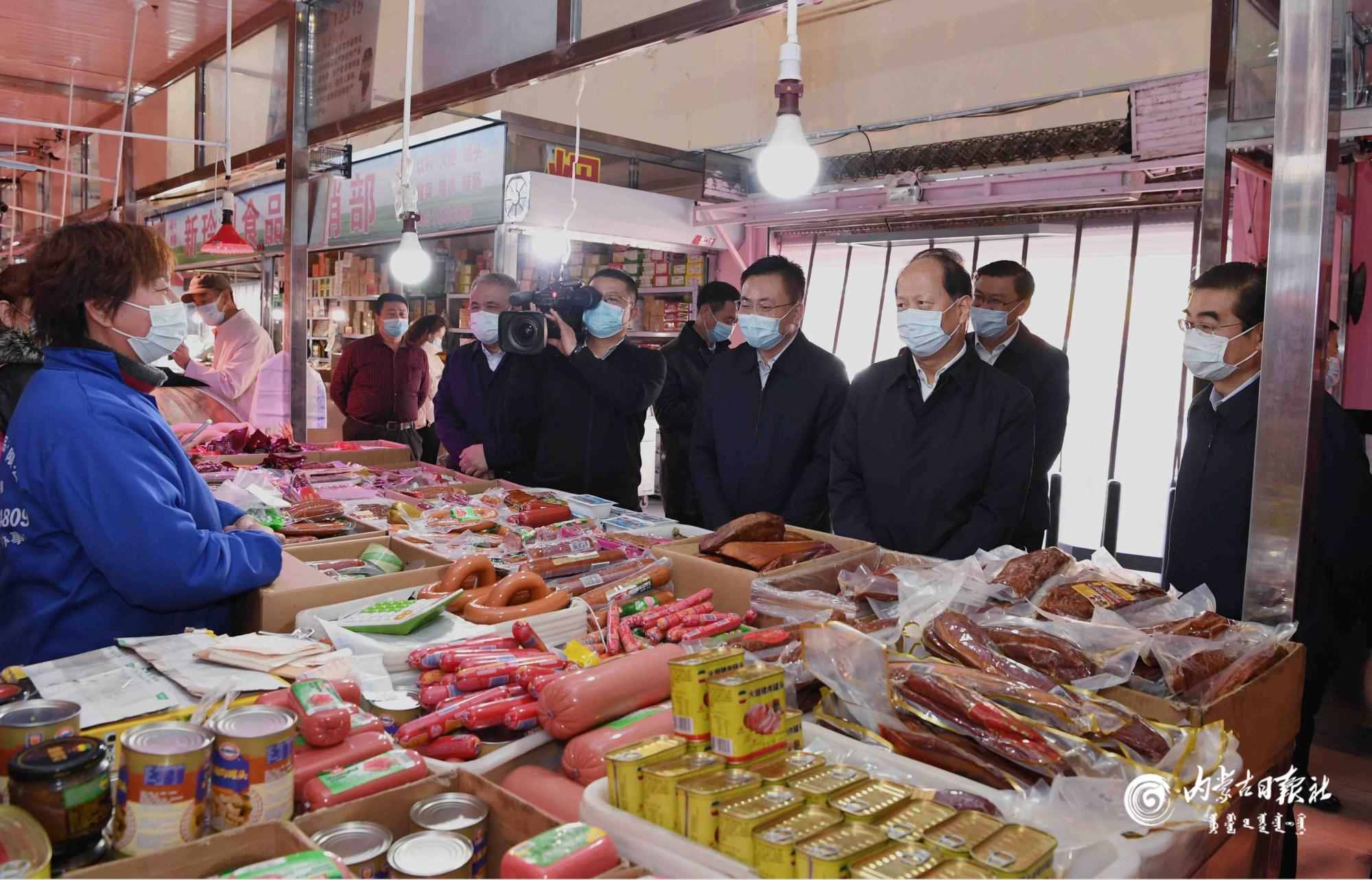 10月26日,自治區(qū)黨委書記、人大常委會(huì)主任石泰峰來到東瓦窯農(nóng)副產(chǎn)品批發(fā)市場(chǎng),與購物市民一起接受體溫檢測(cè)。在水產(chǎn)海鮮和肉食大廳,他認(rèn)真察看防控措施落實(shí)情況。內(nèi)蒙古日?qǐng)?bào)社融媒體記者 袁永紅 攝