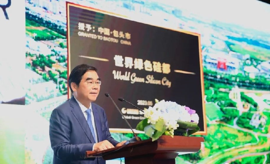 國(guó)際太陽(yáng)能光伏與智慧能源大會(huì)是全球規(guī)模最大、最具影響力的專業(yè)化國(guó)際化光伏盛會(huì),對(duì)于世界能源變革、全球生態(tài)環(huán)境改善具有重要引領(lǐng)作用。丁繡峰代表市委、市政府向大會(huì)的召開表示熱烈的祝賀,向所有關(guān)心支持包頭發(fā)展的企業(yè)家、專家學(xué)者和各界人士表示衷心的感謝。他說(shuō),全球綠色能源理事會(huì)為包頭市頒授“世界綠色硅都”稱號(hào),我們深感榮幸、倍感振奮?!笆澜缇G色硅都”之于包頭,在于“世界級(jí)”的產(chǎn)業(yè)規(guī)模,2022年包頭成為全國(guó)首個(gè)光伏產(chǎn)業(yè)產(chǎn)值超千億元的城市,預(yù)計(jì)今年底多晶硅、單晶硅產(chǎn)能將分別占到全國(guó)的40%,2025年將分別占到全國(guó)的半壁江山、占到全球的45%,我們將繼續(xù)擴(kuò)大光伏硅優(yōu)勢(shì),建設(shè)全球最大的晶硅材料生產(chǎn)基地,打造萬(wàn)億級(jí)光伏產(chǎn)業(yè)集群,建設(shè)千億級(jí)半導(dǎo)體產(chǎn)業(yè)集群和有機(jī)硅產(chǎn)業(yè)集群。“世界綠色硅都”之于包頭,在于“世界級(jí)”的綠電支撐,包頭風(fēng)光資源豐富,可為硅產(chǎn)業(yè)發(fā)展提供“綠色電、便宜電、可靠電”,到2025年全市光伏產(chǎn)業(yè)使用“綠電”比例將達(dá)到40%以上,為企業(yè)通過(guò)“碳足跡”認(rèn)證、進(jìn)軍歐盟等國(guó)際光伏市場(chǎng)拿到綠色通行證?!笆澜缇G色硅都”之于包頭,在于“世界級(jí)”的協(xié)同配套,包頭發(fā)展硅產(chǎn)業(yè)從一開始就本著“既求全、又求強(qiáng)”的原則,目前已形成從工業(yè)硅到多晶硅、單晶硅,再到切片、電池片、組件的完整光伏產(chǎn)業(yè)鏈,我們將繼續(xù)抓好產(chǎn)業(yè)成龍配套,保證光伏產(chǎn)業(yè)鏈各環(huán)節(jié)都有頭部企業(yè)集聚,使包頭成為全國(guó)乃至全球光伏產(chǎn)業(yè)鏈最完整、配套率最高的城市?!笆澜缇G色硅都”之于包頭,在于“世界級(jí)”的技術(shù)研發(fā),云集包頭的硅產(chǎn)業(yè)頭部企業(yè)都擁有著引領(lǐng)行業(yè)前沿的技術(shù)優(yōu)勢(shì),是包頭硅產(chǎn)業(yè)屹立全球行業(yè)前沿的硬支撐,我們將加速創(chuàng)新鏈與產(chǎn)業(yè)鏈融合發(fā)展,使包頭成為具有全球影響力的硅產(chǎn)業(yè)先進(jìn)技術(shù)研發(fā)中心、認(rèn)證中心、檢測(cè)中心、推廣中心。