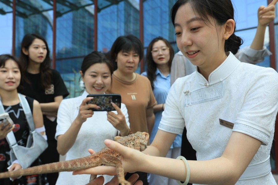 8月15日,第2個(gè)全國生態(tài)日,內(nèi)蒙古自治區(qū)自然資源廳在內(nèi)蒙古自然博物館組織開展全國生態(tài)日宣傳活動?;顒蝇F(xiàn)場的野生動物零距離互動和自然科普公益課等,吸引了眾多參觀者圍觀。