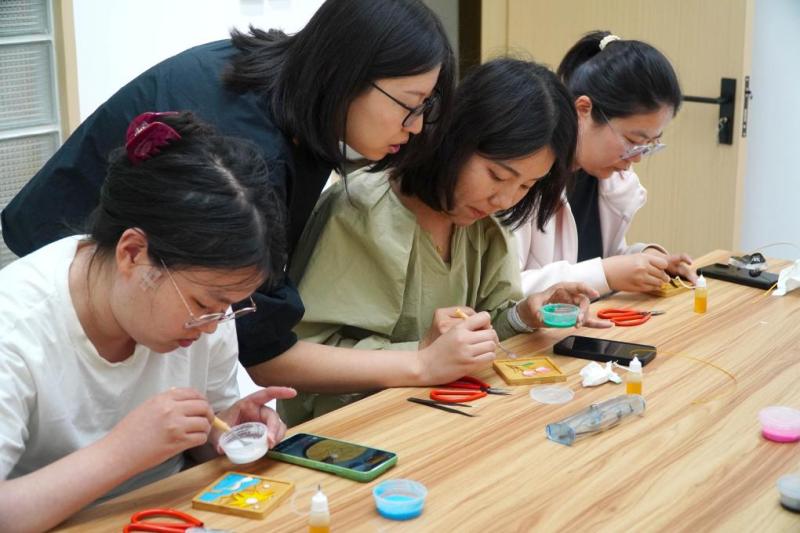 2024年5月10日,在位于山東省淄博市張店區(qū)公園街道的青年夜校,學(xué)員在學(xué)習(xí)掐絲琺瑯非遺技藝。新華社記者 徐速繪 攝