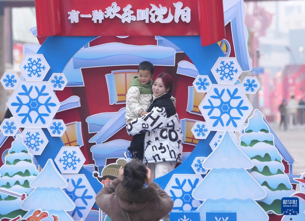 ??2月9日,游客在沈陽(yáng)中街拍照留影。