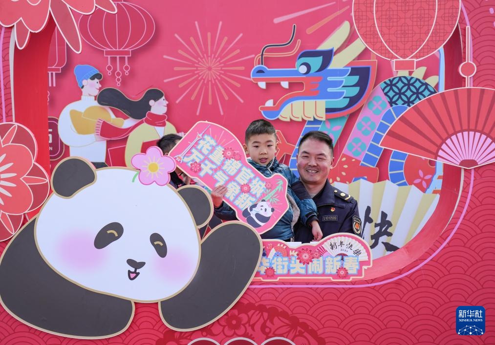 ??2月9日,在四川省成都市,旅客在成都東站西廣場(chǎng)的新年主題裝飾處留影。