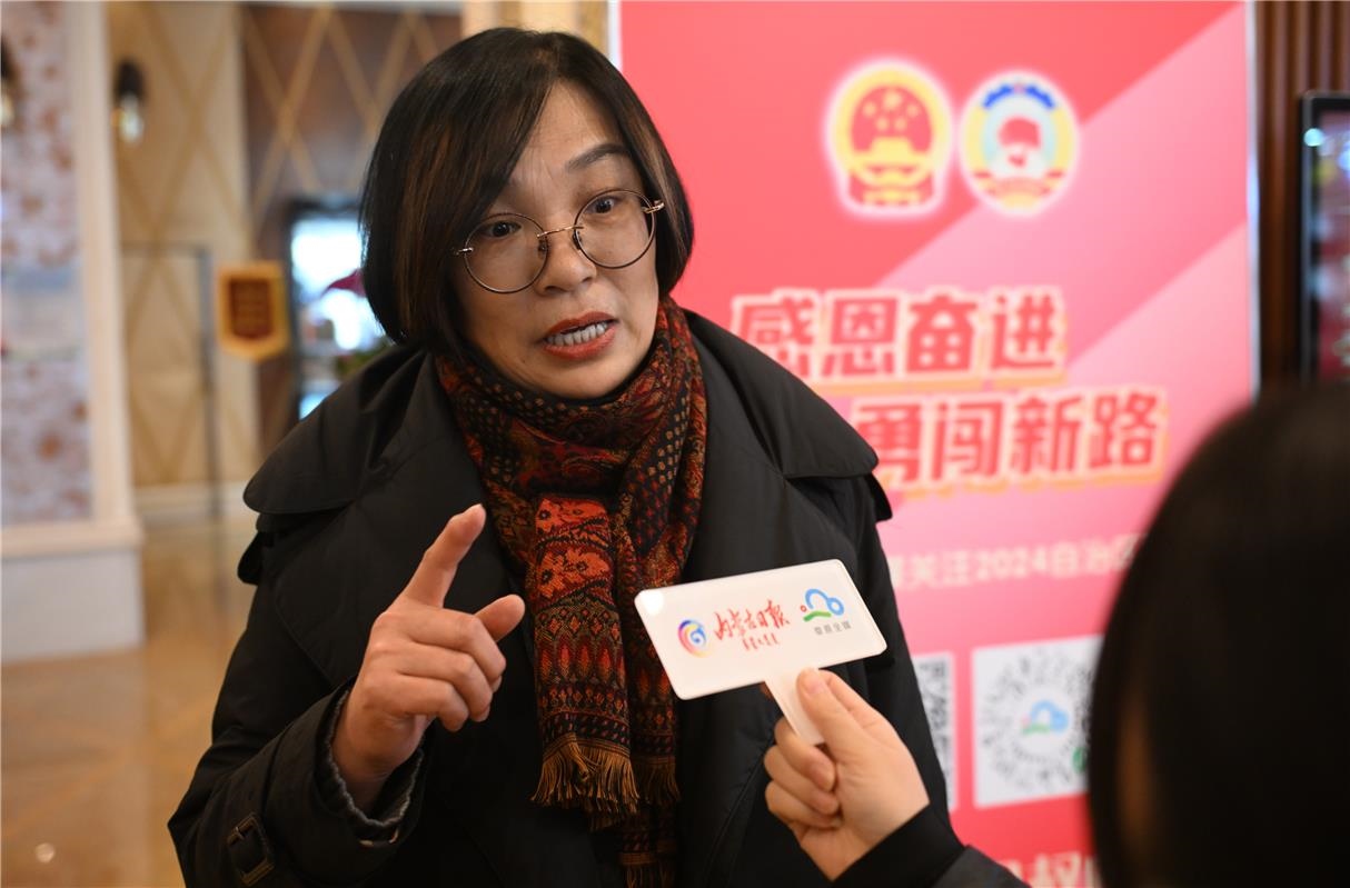 出席自治區(qū)十四屆人大二次會議的人大代表常曉萍接受內蒙古日報·草原全媒記者采訪。