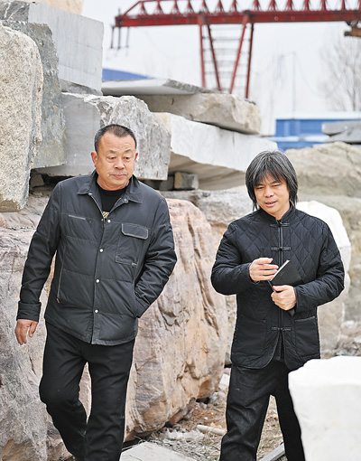近日,全國(guó)政協(xié)委員、河北翰鼎雕塑集團(tuán)首席技師高英坡(右)圍繞傳統(tǒng)工藝項(xiàng)目保護(hù)開展調(diào)研。