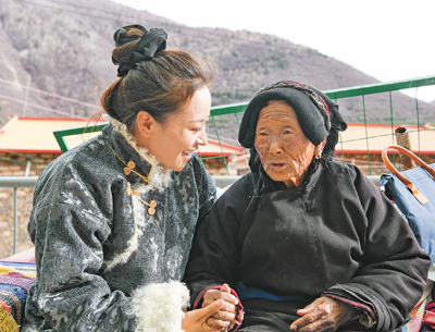 近日,全國(guó)人大代表、四川省馬爾康市老年養(yǎng)護(hù)院院長(zhǎng)格西王姆(左)走訪鄉(xiāng)村,傾聽老人心聲。