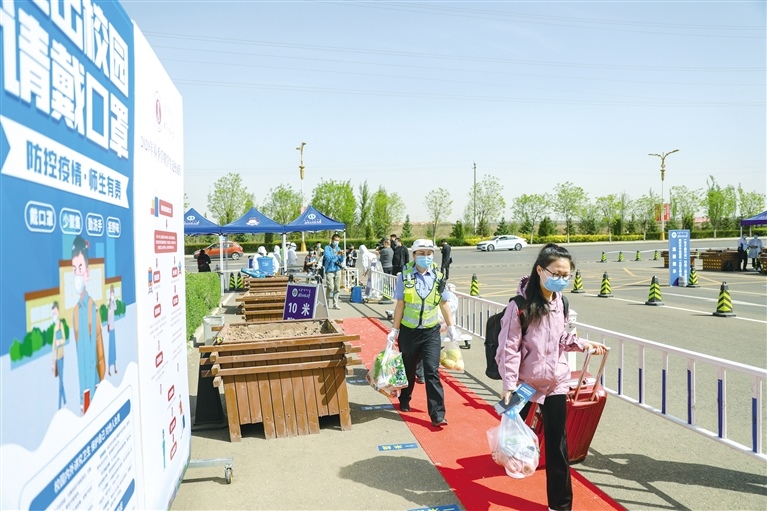 當日一早,內蒙古師范大學盛樂校區(qū)的教職工按照疫情防控等有關部門的規(guī)定和要求,統(tǒng)一進行接站、入校、消殺、掃碼等一系列程序,以保學生安全返校。
